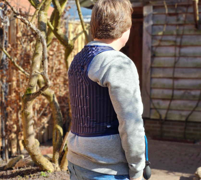 Hi, I’m Chris, 26 years old, and I’ve been diagnosed with autism. I’ve been using the pressure vest for about two months now, almost every day. I usually wear it before and after an activity, but sometimes also during an activity. At first, I really had to get used to it. As someone who can get extremely annoyed by a seam in my sock or a label in my shirt, I initially found wearing the vest a bit difficult. The vest is not very flexible, so movement (especially when it is inflated) is somewhat limited, not very much, but I had to get used to it. Fortunately, I got used to it pretty quickly, and now I can’t do without it.