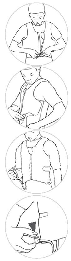 - Im Panikfall können Sie den Druck schnell ablassen, indem Sie die Weste über den Reißverschluss oder durch Öffnen der Klettverschlüsse ausziehen.